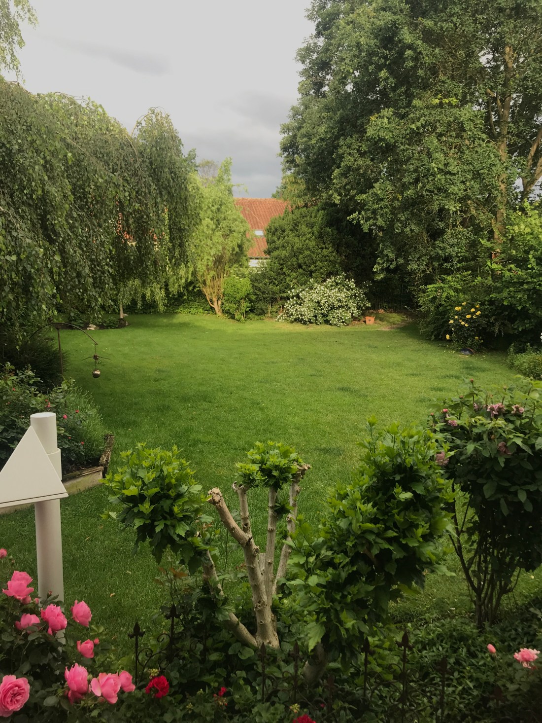 Die frische, kühle Luft in die Lungen strömen lassen. Die Stille des Morgens beim ersten Spaziergang mit dem Hund erleben. Der Weg, er führt entlang am satten in Tau gelegtem Grün hinein in das strahlende Licht der reflektierenden Wassertropfen. Die Sonne findet ihren Weg durch das dichte Blattwerk der Bäume. Von Ferne rauscht das Wasser am großen Teich in die Gräben. Der Tag kann kommen.